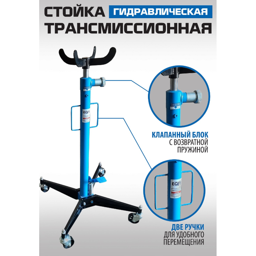 Стойка трансмиссионная гидравлическая г/п 500кг. диаметр штока 30мм. Подъём 1200-1900мм. Стойка трансмиссионная гидравлическая профессиональная грузоподъемность 500кг используется при монтаже и демонтаже узлов трансмиссий, КПП, тормозных суппортов и других агрегатов автомобиля, установленного на смотровой яме, эстакаде или подъемнике для ремонта или технического обслуживания. Трансмиссионная гидравлическая стойка является мобильным подъемным устройством. С ее помощью можно поднять и переместить снятый узел. Цвет темно-синий.