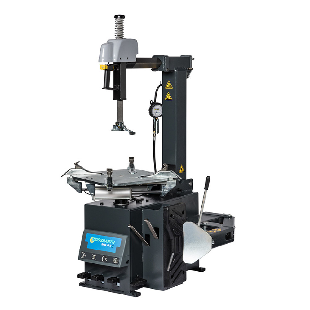 BEISSBARTH MS 63 S - 2в (В) Шиномонтажный станок с откидной колонной (управляется педалью), оснащен 20-дюймовым поворотным столом, 2 скорости, масляным фильтром, трубкой для накачивания и пистолетом.