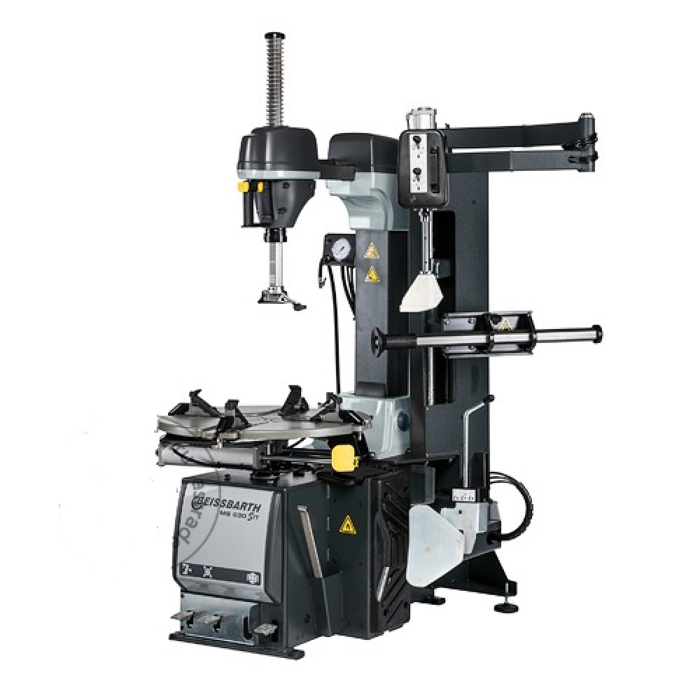 Пневматически управляемое крепление колонны усилено для повышения прочности и устойчивости наиболее нагруженных компонентов. Штанга, к которой крепится монтажная головка, теперь имеет шестиугольную форму, что придает ей дополнительную жесткость. Безопасность пользователя и защита обода также усовершенствованы. Специальный ярко-желтый дефлектор крепится к цилиндру поворотного стола служит дополнительной защитой для пользователя.