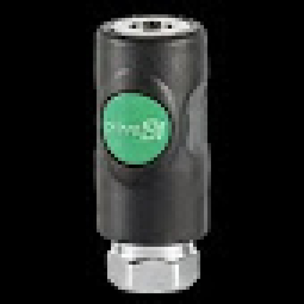 Быстроразъемное соединение "мама", серия SAFETY "с зеленой кнопкой" с механизмом защиты от пневмоудара, присоединительный размер 1/4" внутренняя резьба, диаметр проходного отверстия для воздуха 7,2-7,4 мм, стандарт ESI 07