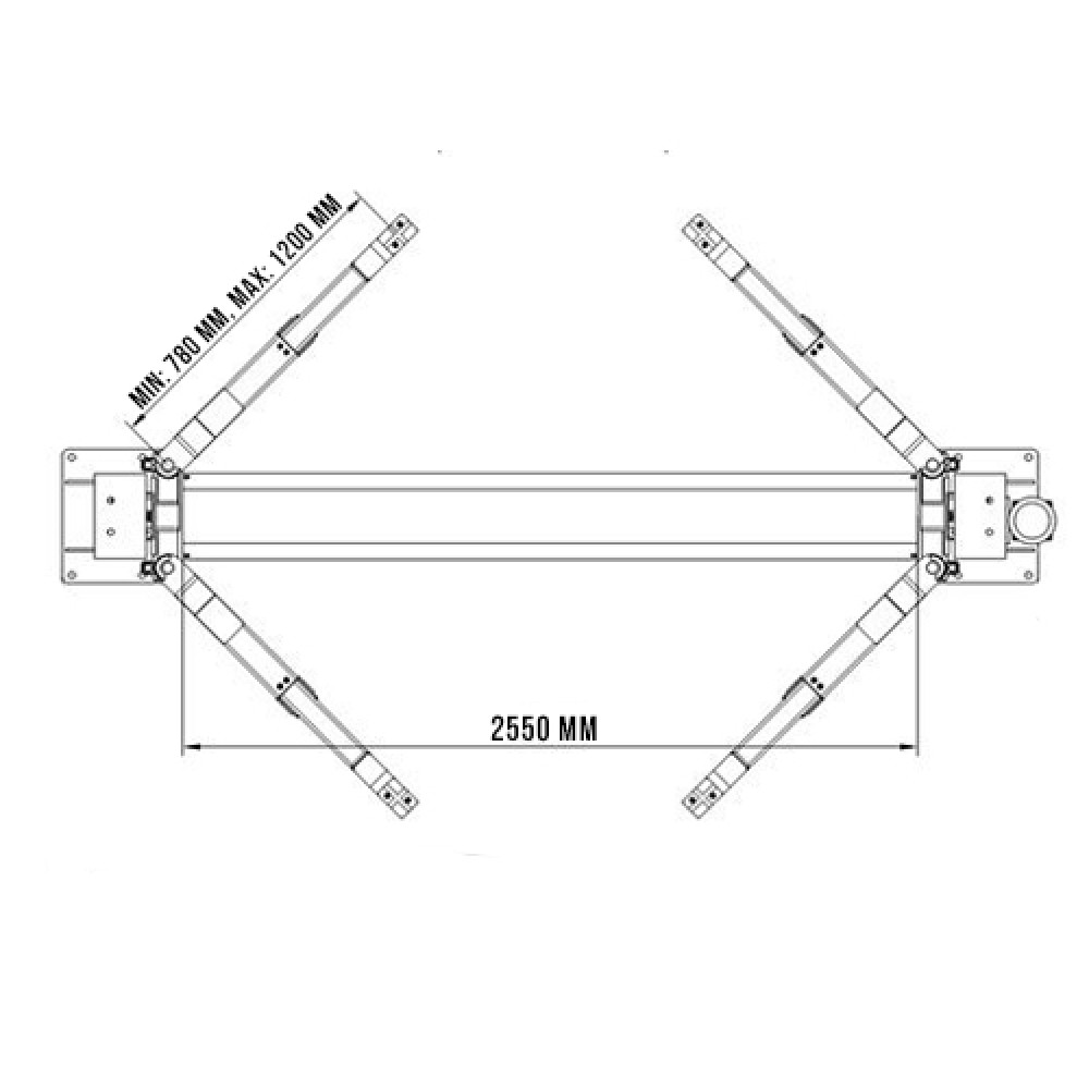 Верхняя синхронизация (шланги гидравлики проходят над автомобилем, что позволяет заехать на подъемник по ровному полу и легко перемещать ремонтное оборудование под поднятым автомобилем);