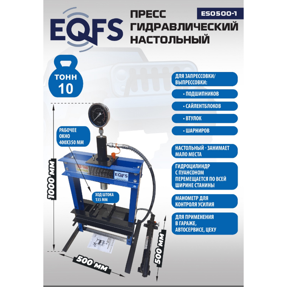 Настольный. Малый гидравлический, ручной, сборно-разборный 10 тонн. Для запрессовки подшипников, деталей машин, втулок и т.п. Интервал пуансона 135 мм. Рабочее окно: 400 x 350 мм. Предназначен для запрессовки деталей машин в автосервисе, мастерских по ремонту лодочных моторов, велосипедов и т.п. Цвет синий. Гидроцилиндр с пуансоном имеет возможность перемещения по всей ширине станины. Контроль усилия – визуально по шкале манометра.