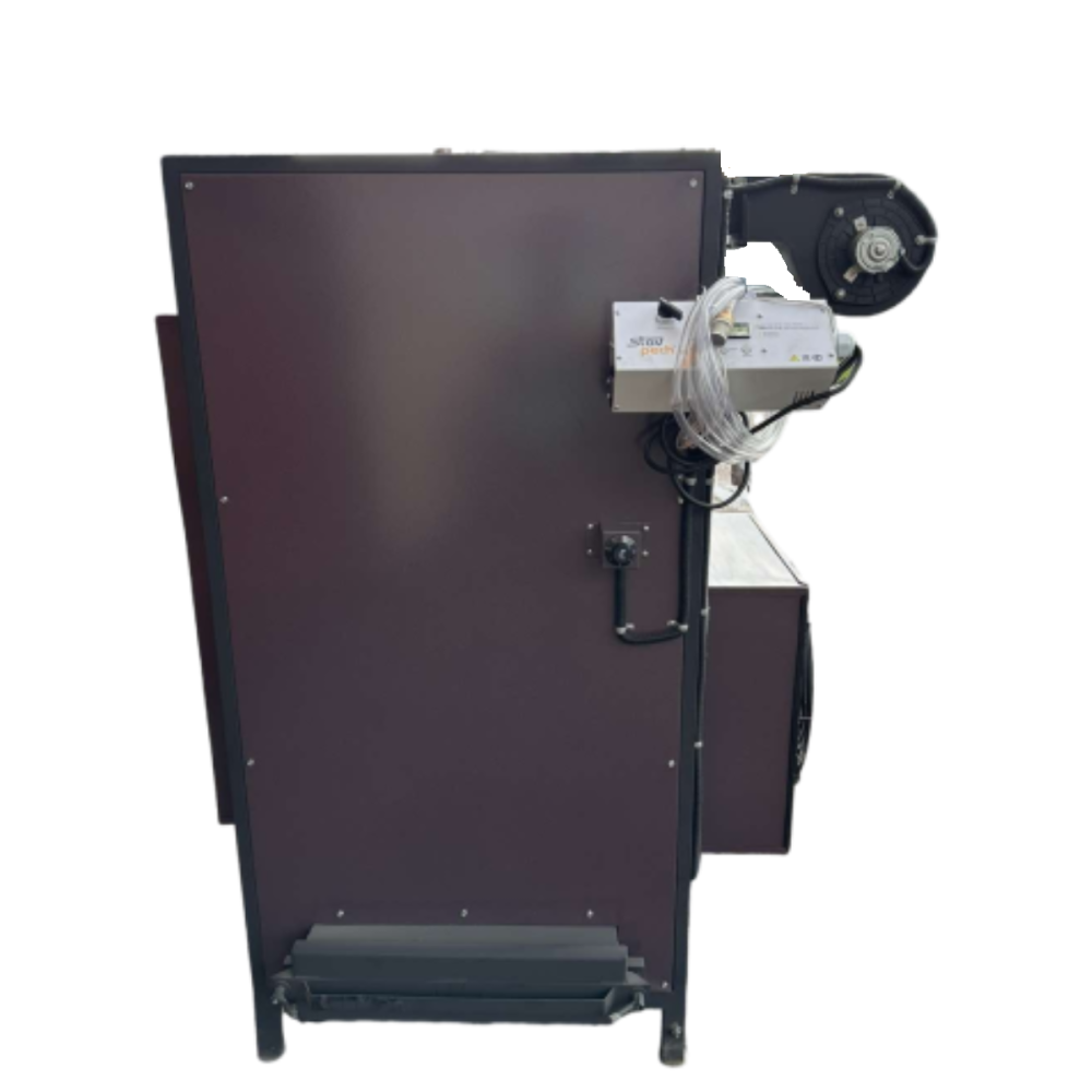 Режимы работы / включения / отключения, температура в помещении и топки регулируются с помощью блока автоматики. Имеется защита от перелива масла, выключения электричества. Если пламя гаснет, по какой-либо причине, также срабатывает защита.
