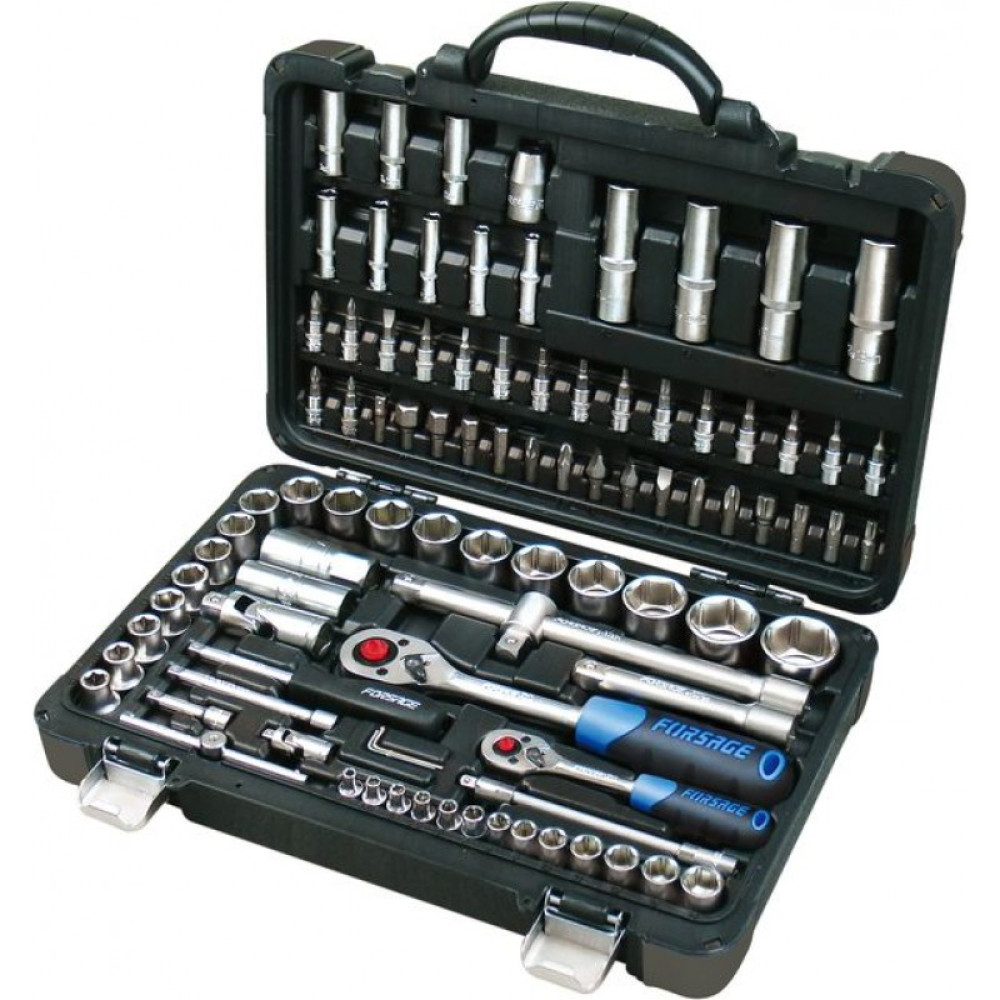 Посадочный квадрат: 1/2", 1/4". Тип головок: 6-гранные, короткие, глубокие. Комплектация: головки 1/4"короткие 25 мм: 4, 4.5, 5, 5.5, 6, 7, 8, 9, 10, 11, 12, 13, 14 мм; головки 1/4"глубокие 50 мм: 6, 7, 8, 9, 10, 11, 12, 13 мм; головки-биты 1/4"HEX 35 мм: 3, 4, 5, 6 мм; головки-биты 1/4"TORX 35 мм: T8, T10, T15, T20, T25, T30; головки-биты 1/4"SL 35 мм: 4, 5.5, 6,5; головки-биты 1/4"РН 35 мм: РН.1, РН.2; головки-биты 1/4"PZ 35 мм: PZ.1, PZ.2; трещотка 1/4"; рукоятка 1/4"150 мм; вороток Т-образный 1/4"115 мм; удлинители 1/4": 50, 100 мм; гибкий удлинитель 1/4"145 мм; кардан шарнирный 1/4"; биты 5/16"HEX 30 мм: 8, 10, 12, 14 мм; биты 5/16"TORX 30 мм: Т40, Т45, Т50, Т55; биты 5/16"SL 30 мм: 8, 10, 12; биты 5/16"PH 30 мм: PH.3, PH.4; биты 5/16"PZ 30 мм: PZ.3, PZ.4; головки 1/2"короткие 38 мм: 10, 11, 12, 13, 14, 15, 16, 17, 18, 19, 20, 21, 24, 27, 30, 32 мм; головки 1/2"глубокие 77 мм: 14, 15, 17, 19 мм ; головки свечные 1/2": 16, 21 мм; трещотка 1/2"; удлинители 1/2": 125, 250 мм; кардан шарнирный 1/2"; адаптер с отверстием с 3/8"(F)*1/2"(M) ; битодержатель 1/2"(F)*5/16"(F); адаптер-переходник под шуруповерт 1/4"(F)*1/4"(F) 30 мм; ключи Г-образные 6-гранные короткие: 1.5, 2, 2.5 мм. Пластиковый кейс с металлическими защелками.