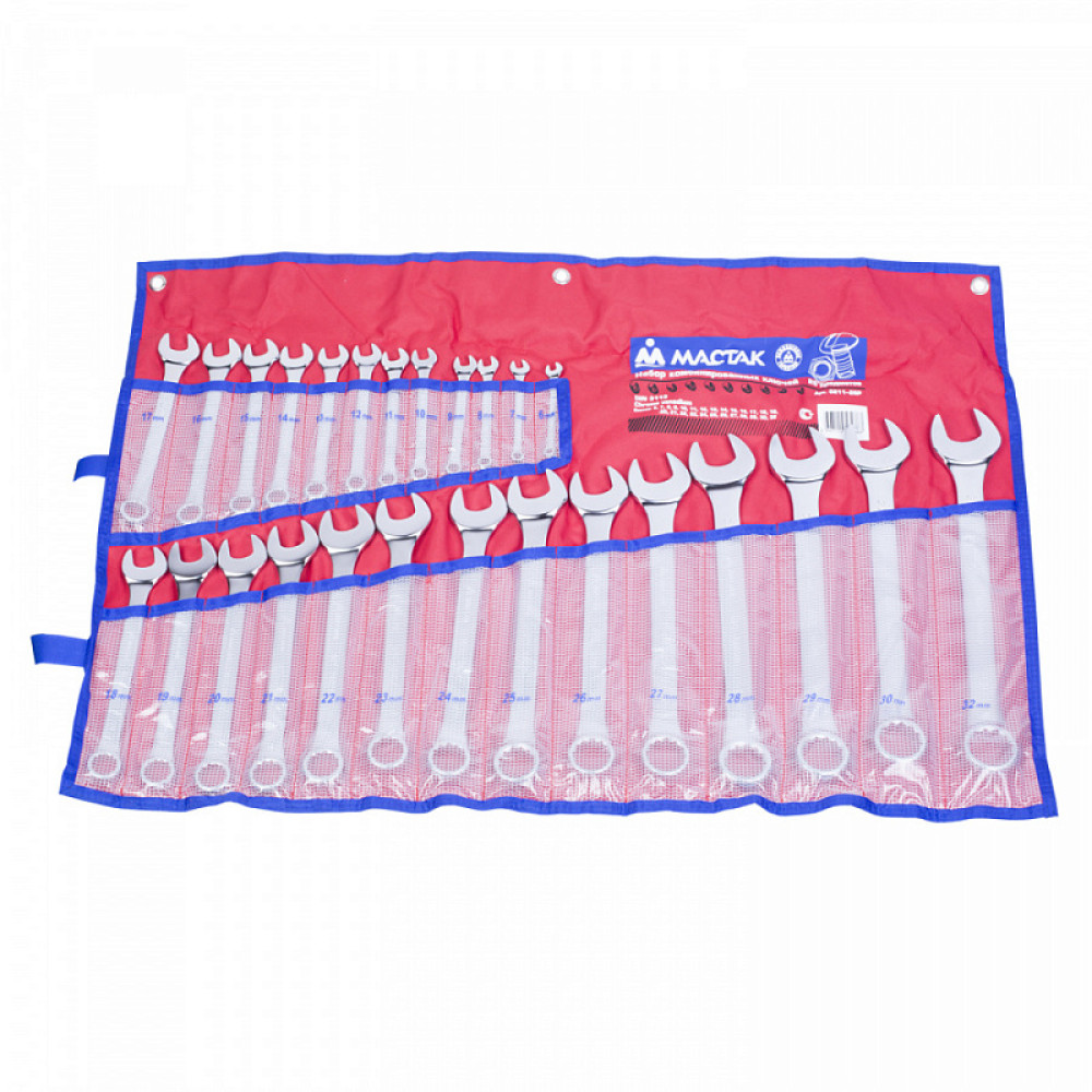 Комплектация данного набора включает ключи всех размерностей от 6 мм до 32 мм без пропусков редко встречающихся размеров. Удобное размещение ключей в чехле - каждый ключ в своей ячейке под соответствующим размерности номером. Разместив набор на рабочем месте – на стене, инструментальном стенде или верстаке, вы всегда будете иметь возможность выбрать тот ключ, который необходим в данный момент.