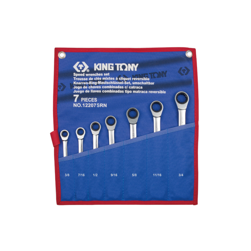 Набор комбинированных трещоточных ключей 3/8"-3/4", чехол из теторона, 7 предметов KING TONY 12207SRN незаменим при работе с крепежом, расположенном в труднодоступных местах или в ограниченном пространстве.