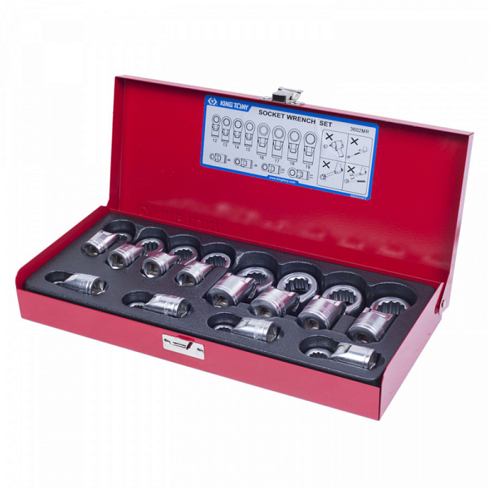 Набор накидных ключей, 8-19 мм, 12 предметов KING TONY 3602MR – уникален как по составу, так и по функциональности. Форма и конфигурация ключей, входящих в состав набора, позволяет выполнять такие работы, для которых применение стандартных инструментов бывает недостаточно.