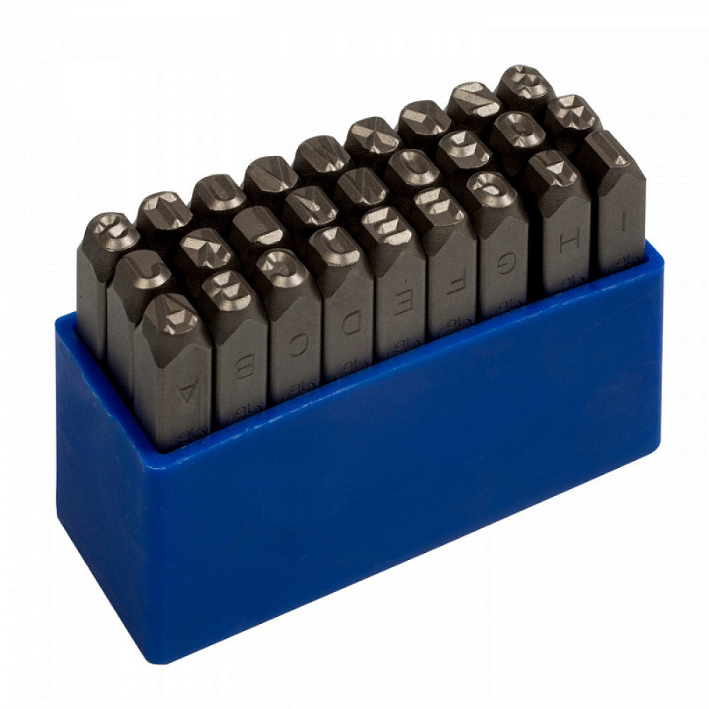 Набор ударных клейм 5 мм, буквы-латиница, 27 предметов, хвостовик HRC 40 KING TONY 11527SQ05. Назначение клейм – нанесение оттиска на металлические поверхности деталей, арматуры и других предметов с целью их маркировки. Нанесение производится ударным способом.