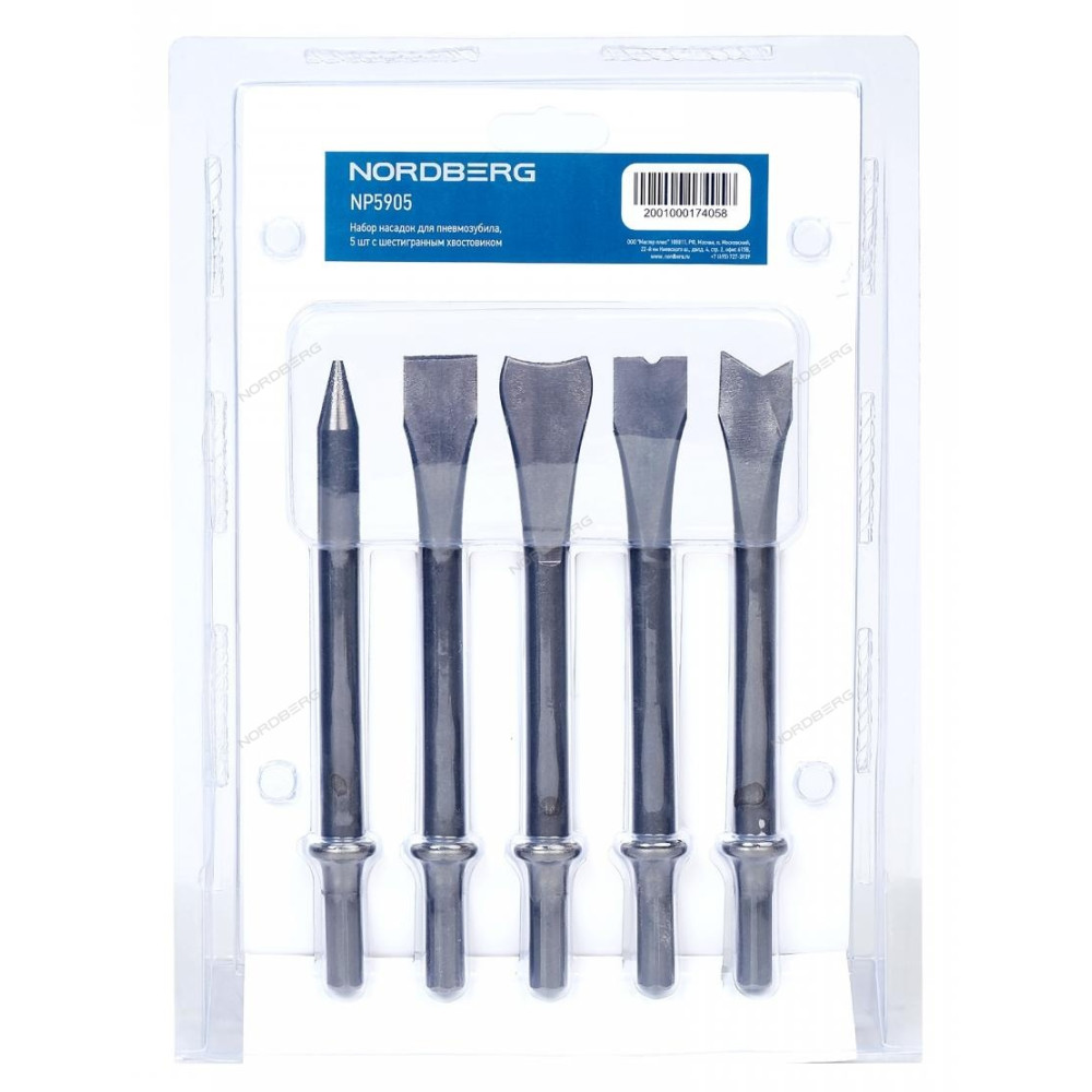 NORDBERG Набор насадок для пневмозубила NP5905, 5 шт с шестигранным хвостовиком