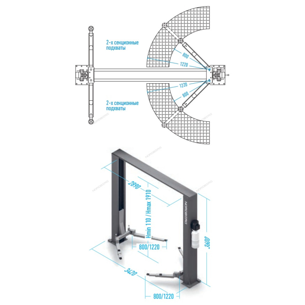 электрогидравлический подъемник (220В) с верхней тросовой синхронизацией