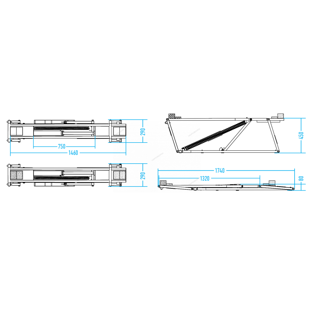 • Два гидроцилиндра для равномерного подъема автомобиля