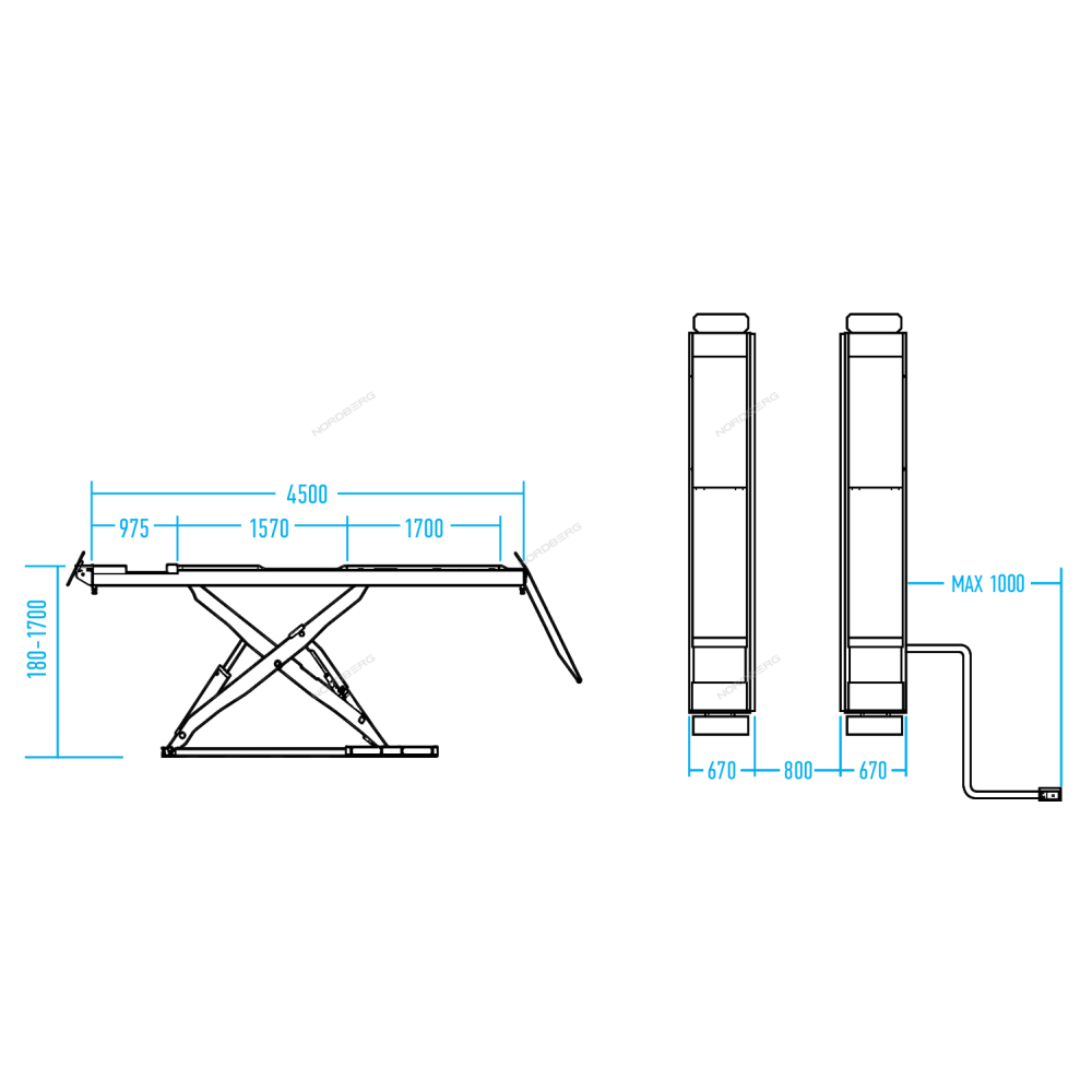 Упаковка 1:Высота платформы 180 мм Ширина платформы 620 мм Грузоподъемность 4000 кг Высота подъема 1700 мм Длина платформы 4500 мм Ширина 2040 мм Длина 5700 мм Время подъема 55 сек. Мощность 2,2 кВт
