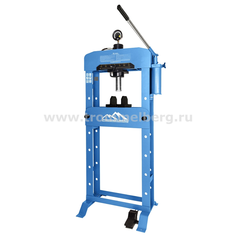 Напольный гидравлический пресс с совмещенным пневматическим и ручным приводом развивает максимальное усилие 30 тонн. Пресс предназначен для снятия и установки зубчатых колес, универсальных соединений, шкивов, поршневых пальцев, сгибания, распрямления и соединения деталей.