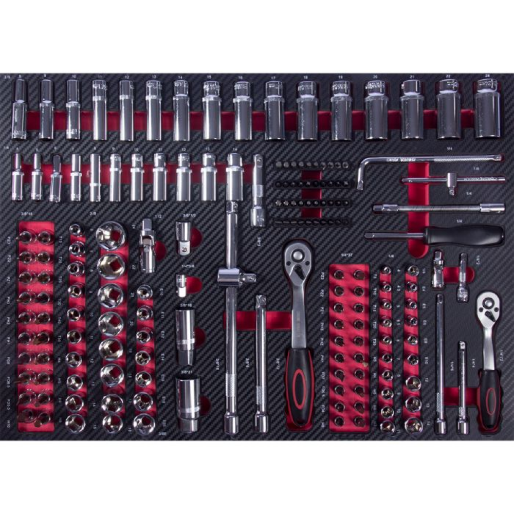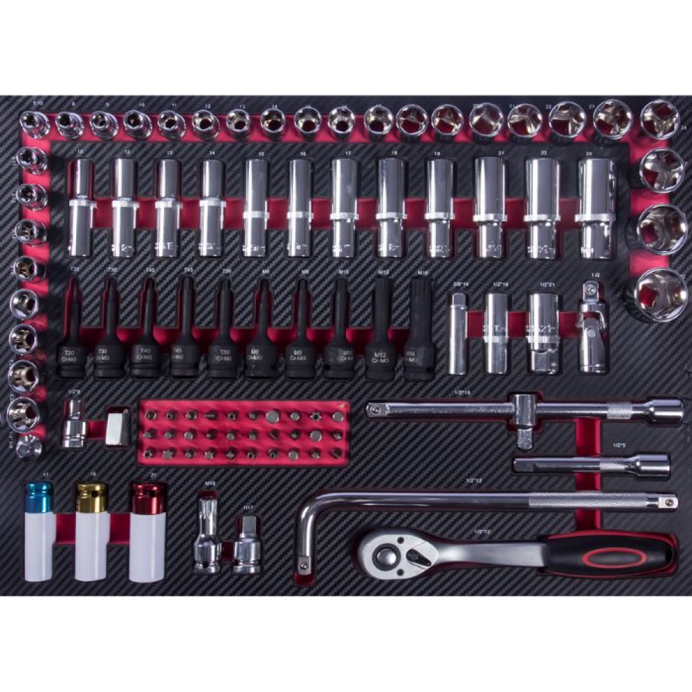 Профессиональная инструментальная тележка Top Avto CRV-07 — это комплексное оснащение рабочего места автомеханика, объединяющее надежную мобильную систему хранения и готовый набор из более чем 421 специализированных инструментов. Ключевое преимущество — оптимизация рабочего процесса: система с полностью выдвижными ящиками на шарикоподшипниковых направляющих и двойной блокировкой обеспечивает мгновенный доступ к любому инструменту, сокращая время на поиски. Комплектация покрывает 95% задач по ТО и ремонту легковых автомобилей — от шиномонтажа и замены фильтров до работ с ходовой частью и двигателем, что делает её идеальным решением для старта мастерской или модернизации инструментального парка.