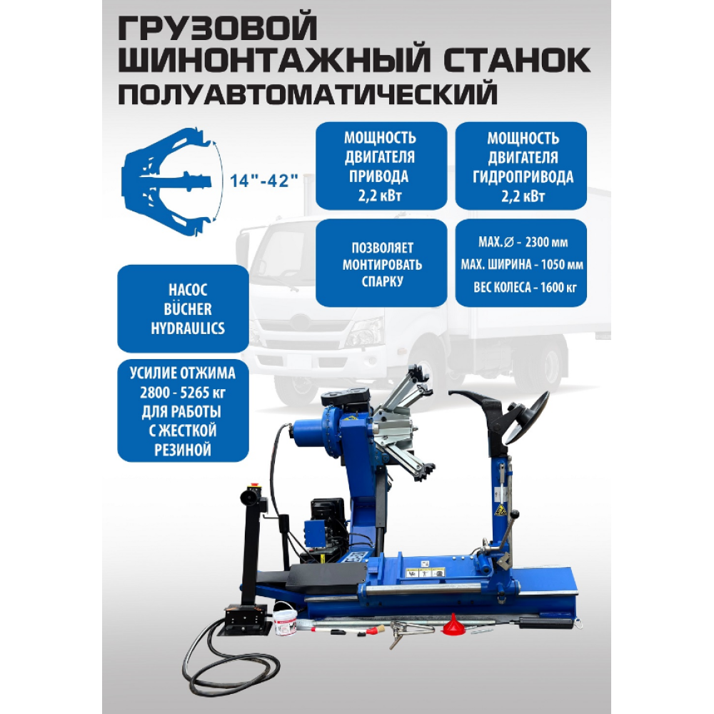 Полностью автоматизированный универсальный грузовой шиномонтажный станок 14-42 дюймов для монтажа/демонтажа шин легких грузовиков, грузовых автомобилей, автобусов и промышленного транспорта, сельхозтехники и тракторов. Оснащен гидравликой НЕМЕЦКОГО производства-BUCHER HYDRAULICS. Прост и удобен в эксплуатации. Хорошее соотношение цена-качество.