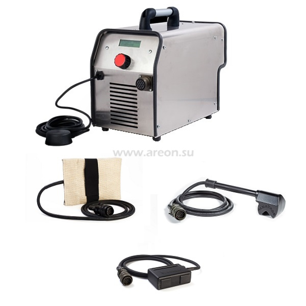В комплекте с насадкой для нагрева болтов и гаек, насадкой для демонтажа стёкол, педалью управления и насадкой-"варежкой" для удаления наклеек и молдингов.