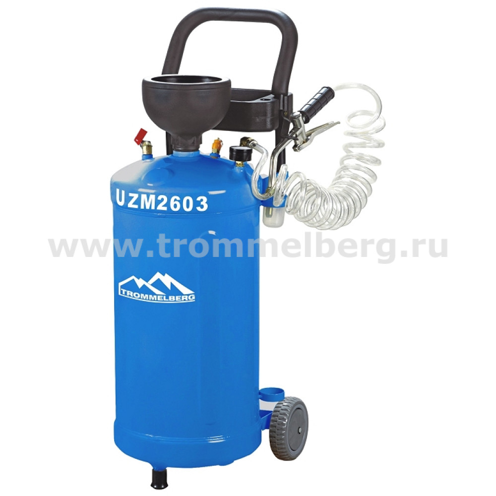 Подача масла из резервуара осуществляется путем создания давления от внешнего источника сжатого воздуха. Снабжена масломерной трубкой.
