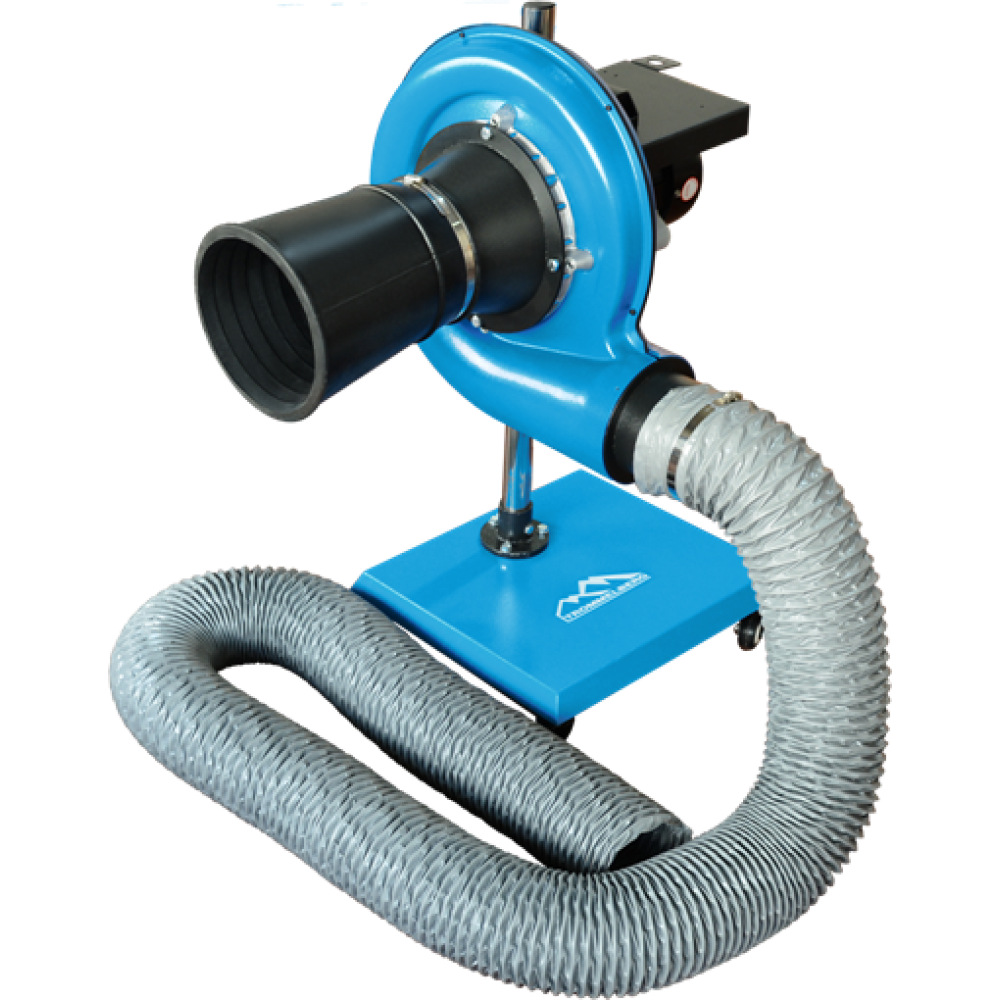 Электрический вентилятор на мобильном штативе для удаления выхлопных газов легкового и грузового транспорта.